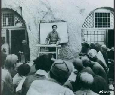 1938年4月,毛澤東在魯迅藝術學院講演。