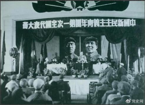 1949年4月11日,中國新民主主義青年團第一次全國代表大會召開。圖為大會會場。