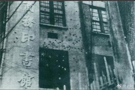 1927年4月12日,蔣介石在上海發(fā)動(dòng)反革命政變,上海工人糾察隊(duì)總指揮所在地商務(wù)印書館遭到襲擊,大樓上彈痕斑斑。